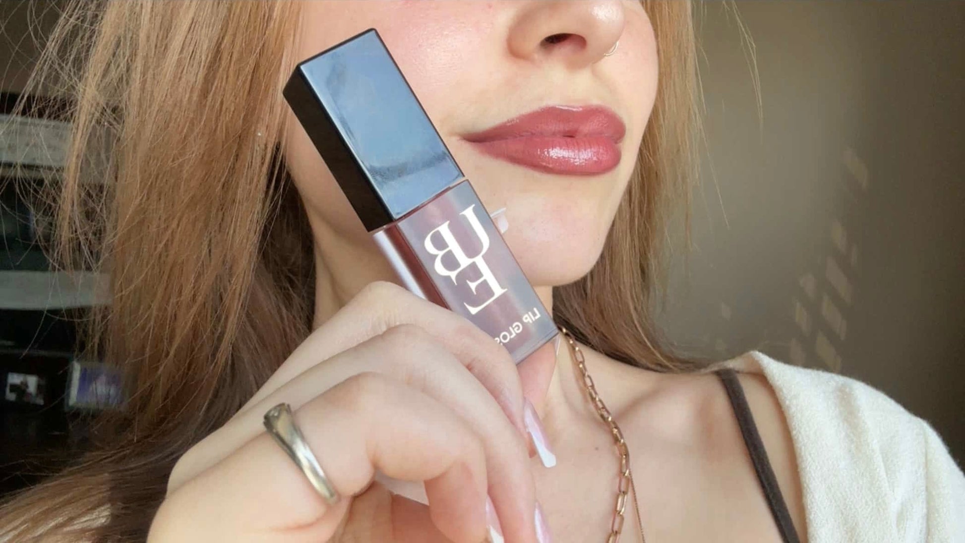 Deep rose with brown undertones and gold metallic sparkles. Holiday-scented and high impact — gorgeous with a lip liner.